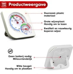 Qumax Digitale Hygrometer – Thermometer Voor Binnen – Luchtvochtigheidsmeter Met Halfjaar Accu – Wit