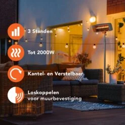LifeGoods Terrasverwarmer – Elektrisch – 2000W – Hangend En Staand – Incl. Afstandbediening – 3 Standen – Zwart