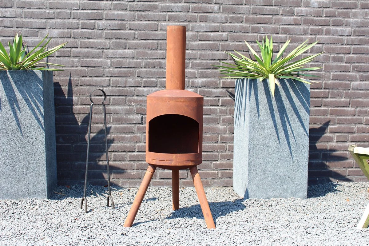 De tuinhaard potkachel small roest is gemaakt van dik staal(+/-2 mm). Het staal is behandeld waardoor een roestige look ontstaat.