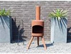Terraskachel potkachel small roest staat door met zijn 3 poten zeer stevig op de grond. Een bijkomend voordeel is ook dat er geen onderplaat meer nodig is, en je de terrashaard direct op het terras of gazon kan zetten.