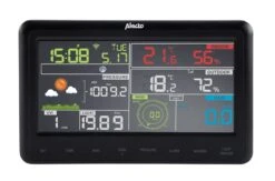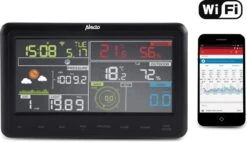 - Sensoren voor: UV en zonnestralen, luchtvochtigheid, windsnelheid en windrichting, luchtdruk, binnen- buiten- en gevoelstemperatuur, neerslag