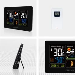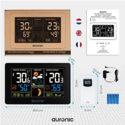 Het Auronic Weerstation doet zowel metingen binnen als buiten. Het weerstation zelf meet de temperatuur en de vochtigheidsgraad binnenshuis. Het meetbereik van de binnentemperatuur is 0°C tot 50°C. Via de draadloze remote sensor worden de temperatuur en de vochtigheidsgraad buiten doorgegeven. Het meetbereik buiten is -40°C tot 70°C. Deze sensor heeft een bereik van 60 m en is plensdicht (IPX4). Het weerstation kan wel tot 3 verschillende remote sensors ondersteunen!