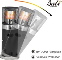 De Balioutdoors lounge terrasverwarmer is volledig gemaakt van edelstaal en is geschikt voor 5 tot 11 kg gasfles (incl. 50cm toevoerleiding en drukregelaar 30mbar) welke in heet onderstel past. Met behulp van het windscherm kan het verwarmingsvermogen tot 7,3kW met een gasverbruik van ca. 531g/u optimaal worden benut. Bovendien is de Balioutdoors lounge terrasverwarmer uitgerust met een omvalbeveiliging. Met de robuuste buitenwielen kan de terrasverwarmer optimaal in de tuin en op terrassen worden geplaatst. De Balioutdoors Lounge terrasverwarmer is eenvoudig te starten met de piëzo ontsteking.
