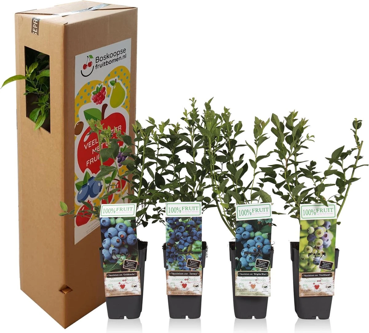 Blauwe Bessen Fruitplanten Mix – Set Van 4 Blauwe Bosbessen – Hoogte 50-60 Cm – Zelfbestuivend, Winterhard