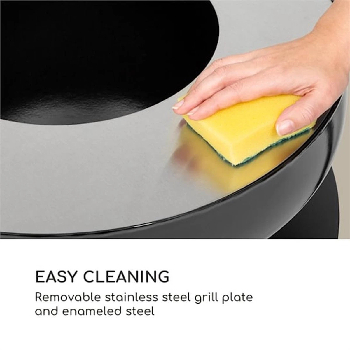 - Eenvoudig te reinigen: afneembare rvs grillplaat en geëmailleerd staal