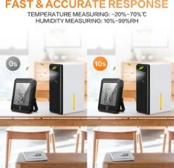 【Hoge nauwkeurigheid en snel bijgewerken】 Binnenthermometer heeft een hoge nauwkeurigheid van ± 2 tot 3% RH en ± 1 °F, waardoor het ideaal is om schommelende meetwaarden zoals in een broeikas te meten; gegevensmetingen worden elke 10 seconden bijgewerkt om de nieuwste veranderingen van het milieu te behouden