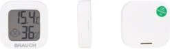 Met deze Brauch SP130 digitale thermometer en hygrometer kun je de temperatuur van binnen en buiten meten. Dankzij het compacte formaat kan je deze thermometer gemakkelijk mee nemen naar bijvoorbeeld de slaapkamer of badkamer. Naast de temperatuur meet de hygrometer ook de luchtvochtigheid. De thermometer kan je op de kast of bureau zetten of aan de muur monteren.