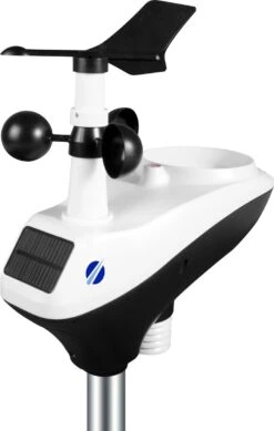 De draadloze buitenunit is compleet: hij komt met een regenmeter, windsnelheidsmeter, windrichtingsensor, temperatuursensor en vochtigheidssensor. De buienmast wordt gevoed door een zonnepaneel. Dat is niet alleen duurzaam maar goedkoop bovendien. Alle data over de actuele neerslag, temperatuur, luchtvochtigheid en wind worden draadloos verzonden naar het prachtige grote scherm, en op een geanimeerde manier in beeld gebracht. Zo weet je altijd precies hoe de situatie buiten is. Daarnaast vertelt dit thuis weerstation je ook hoe het met de temperatuur ín huis is gesteld. Ook deze data wordt draadloos naar je display verzonden.