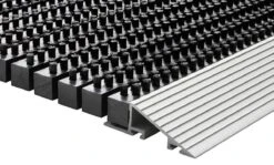 Scrapermat Tiger is gemaakt van aluminium en een combinatie van kunststof en PVC. Deze buitenmat met harde borstels schraapt het grove vuil van de schoenen en zorgt voor een schone vloer. Bovendien is de mat aan twee zijden voorzien van een brede, aflopende aluminium strip. Dit vermindert de kans op struikelen en zorgt ervoor dat de mat goed blijft liggen. Schrapend en representatief. De deurmat heeft een afmeting van 40 x 60 cm en is antraciet van kleur.