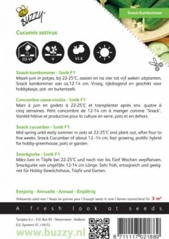 Snack komkommer van ca.12-14 cm. Vroeg, rijkdragend en geschikt voor