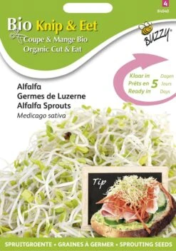 Spruitgroente kan eenvoudig met water worden opgekweekt. De spruiten zijn heerlijk fris van smaak en worden vaak gebruikt als garnering bij vlees of vis en als toevoeging bij salades en op sandwiches. Alfalfa is rijk aan proteïne, carotine en vitaminen C, D, K, E, B12.