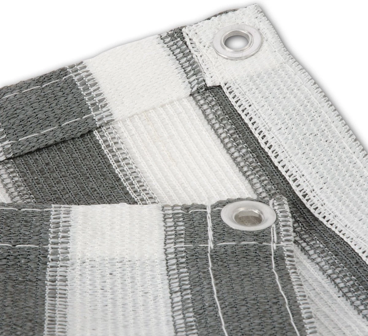 De balkonscherm met grijze en witte strepen bestaat uit heel robuust polyethyleen met een hoogte dichtheit en is dus bijzonder duurzaam en houdbaar. Tegen weerinvloeden, zonnestraling en schimmel toont hij zich uiterst bestendig. Het bijgevoegde bevestigings touw zorgt voor een veilige houding door de bevestiging van de stabiele metalen oogjes aan de bovenste rand van de balkonscherm en aan de balkonreling.