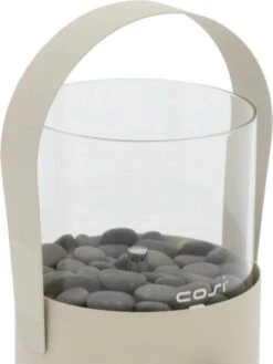 De Cosiscoop Original wordt geleverd inclusief glas en kiezelstenen. Universele 190 gram gascartouches met veiligheidsventiel zijn te verkrijgen bij onze Cosi partners, tuincentra en bouwmarkten.