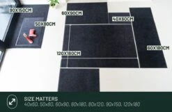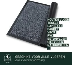 Elke woning, winkel of kantoor verdient een goede deurmat. Of je nu zoekt naar een deurmat, schoonloopmat of droogloopmat voor binnen… met de grijze CLASSIC deurmat 90×150 cm ben je aan het goede adres. Deze antislip droogloopmat is geschikt voor alle vloeren en absorbeert het vocht sneller door het gebruik van multivezels. Hierdoor blijft het vuil achter op de deurmat en blijft je vloer binnen droog en proper. Bovendien is deze antislip deurmat extra duurzaam.