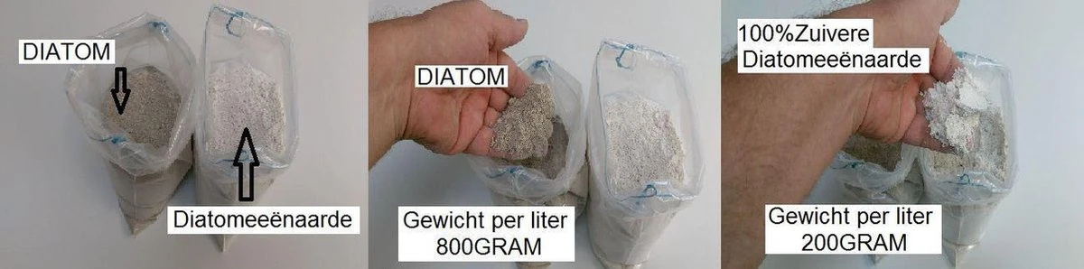 100% zuiver witte Diatomeeenaarde Zeer effectief, 1 Liter heeft een soortelijk gewicht van 150Gram