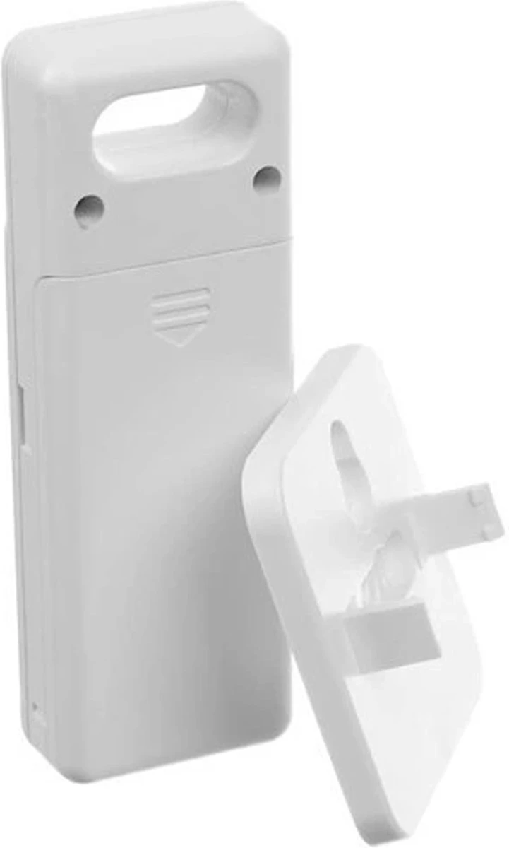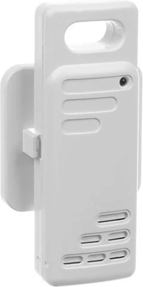 – met behulp van 2 magneten aan de achterkant van het apparaat – bevestig je het station aan bijvoorbeeld een koelkast