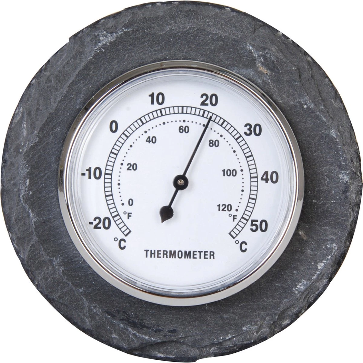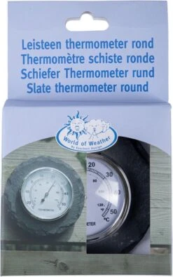 Geeft temperaturen tussen de -25°C en +55_°C aan. Met op achterzijde een metalen ophang oogje. Verpakt in een full colour giftbox.