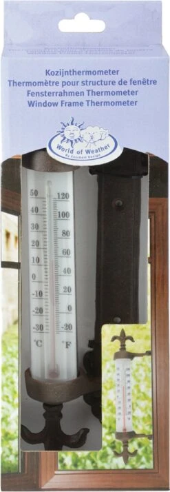Wandthermometer gietijzer Franse lelies voor binnen en buiten. Deze thermometer van gietijzer geeft de temperatuur tussen -30graden en +50gradenCelsius of -20graden en +120gradenFahrenheit. De thermometer wordt aan het kozijn bevestigd en kan dan bijgedraaid worden om vanuit elke gewenste positie de temperatuur af te lezen. Voor een optimale temperatuurmeting hangt u de thermometer best ongeveer op ooghoogte, uit de wind en uit de directe zon. Formaat: L9 x B5 x H29cm. Weermeters en buitenthermometers. Tuinthermometers – meteorologie.