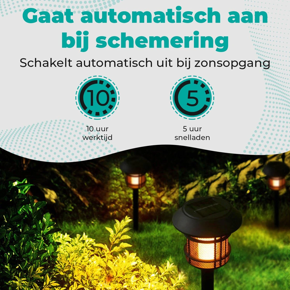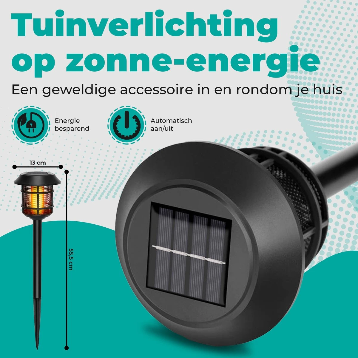 • Energiezuinig – De solar tuinfakkels zijn energiezuinig en werken volledig op zonne-energie. Wanneer je de tuinfakkels op een plaats neerzet waarbij ze voldoende zonlicht pakken, heb je er geen omkijken meer naar. Met behulp van de automatische dag- en nachtsensor laden de tuinkaarsen overdag op en gaan deze aan zodra het donker wordt. Ideaal toch?