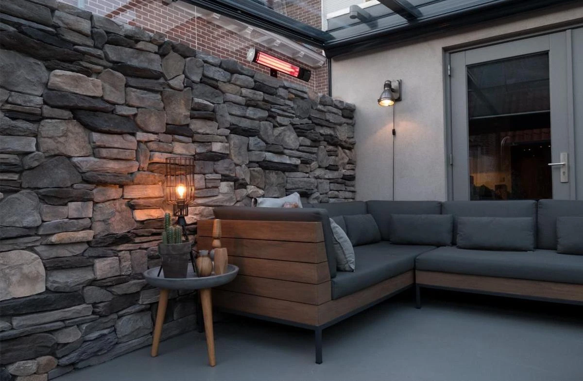 De Eurom Golden Shadow 1500 terrasverwarmer maakt buiten zitten comfortabel. De Golden Shadow lamp geeft namelijk nauwelijks licht af. Deze terrasverwarmer is op te hangen en is 115 graden zwenkbaar. Dankzij de 1500 Watt warmtekracht en de halogeen lampen wordt snel een aangename warmte bereikt op jouw terras of balkon. Deze Terras Heater is spatwaterdicht dus kan ook onder een luifel of parasol gemonteerd worden. Ook een belangrijk voordeel van deze Golden Shadow serie is de lage piekspanning bij het aanzetten.