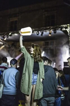 Dankzij de betaalbare prijs kan het in het meervoud worden gecombineerd! Het handvat, geïnspireerd op een headset, markeert de nomadische en trendy kant van de lamp. Het is ook een knipoog naar de metaalkennis van Fermob. Balad, de buitenlamp die oplaadbaar is via een eenvoudige USB-kabel, biedt een autonomie van ongeveer 12 uur, 3 lichttemperaturen: 1 warmwitte kaars (2300 ° K), 1 neutraal wit (4000 ° K) en 1 koel wit ( 6000 ° K) en 2 lichtintensiteiten (100% en 50%). Het is verkrijgbaar in verschillende kleuren uit de Fermob-kleurenkaart en kan worden gecombineerd met 2 metalen poten.