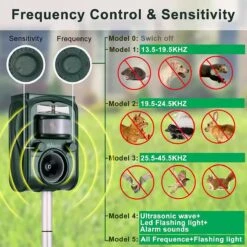De Solar kattenverjager is een ideale manier om dieren als katten, honden, vossen, ratten en muizen buiten uw mooie tuin te houden. Wilt u alle soorten dieren verjagen raden wij aan om frequentie 5 te gebruiken. In onze foto’s kunt u zien welke frequenties toepasbaar zijn voor welke soort dieren.