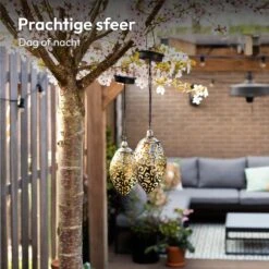 Deze 2 mooie hangende Marokkaanse led lampen zijn zowel overdag als ’s avonds een echte eyecatcher in iedere tuin en op elk terras of balkon. De ideale buitenverlichting die je overal zomaar op kunt hangen. Leuk voor jezelf of als cadeau voor iemand anders!