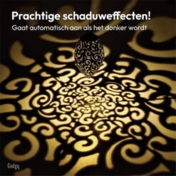 Prachtig Schaduweffect: de mooie perforatie van Oosterse figuren in het metaal samen met de goudkleur aan de binnenkant geeft een prachtig schaduweffect en creëert zo een magische Oriëntaalse sfeer.