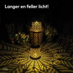 Opgeladen door zonlicht – De lantaarns worden opgeladen door zonlicht, waardoor je geen stekkers, kaarsen of batterijen nodig hebt.