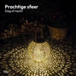 Prachtig Schaduweffect: De perforatie in het metaal samen met de goudkleur aan de binnenkant geeft een prachtig schaduweffect en creëert zo een warme, romantische sfeer.
