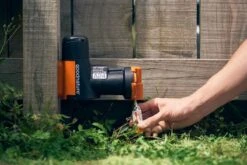 De val wordt geleverd met een houder die gemakkelijk aan een boomstam of houten paal kan worden gevestigd.