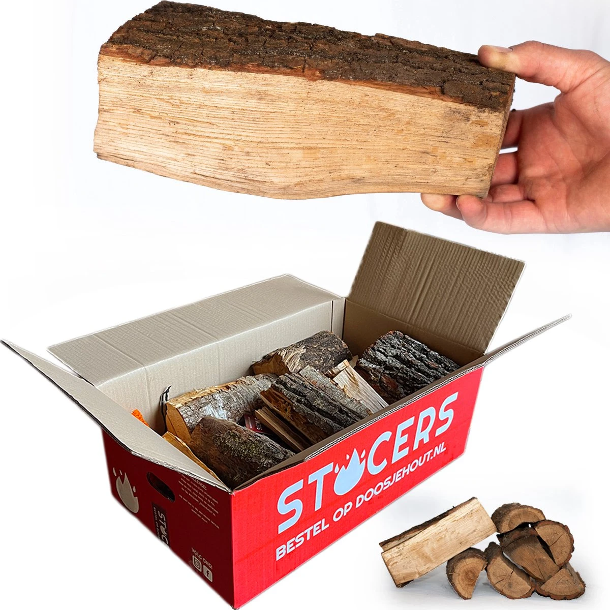 - 20 kg eiken openhaardhout in een doos