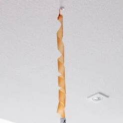 Pak het lusje van de vliegenvanger in een hand beet en de koker in de andere hand. Trek langzaam aan met een draaiende beweging aan het lusje. De kleefband komt nu uit het kokertje. Verwijder de punaise uit het losgekomen dekseltje en gebruik deze om de vanger aan het lusje op te hangen. Na het ophangen zal de vliegenvanger zich vanzelf rechttrekken.