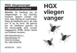 HGX vliegenvanger is een uiterst effectieve manier om zonder moeite vliegen in huis te vangen. De geurloze kleefband bevat geen giftige stoffen en is daardoor veilig in gebruik. De HGX vliegenvanger gaat lang mee zonder dat er verder naar omgekeken hoeft te worden. Vliegen die zijn geland op de vliegenvanger blijven vastkleven aan de kleefband en kunnen daardoor niet meer wegvliegen.