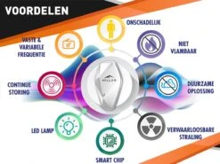 Deze ongediertebestrijder werkt met krachtige ultrasone geluidsgolven. Deze geluidsgolven zullen het zenuwstelsel van de ongedierte verstoren waarna ze vanzelf weggaan en nóg belangrijker: weg blijven! Binnen 2-3 weken ben jij gegarandeerd af van ongedierte!
