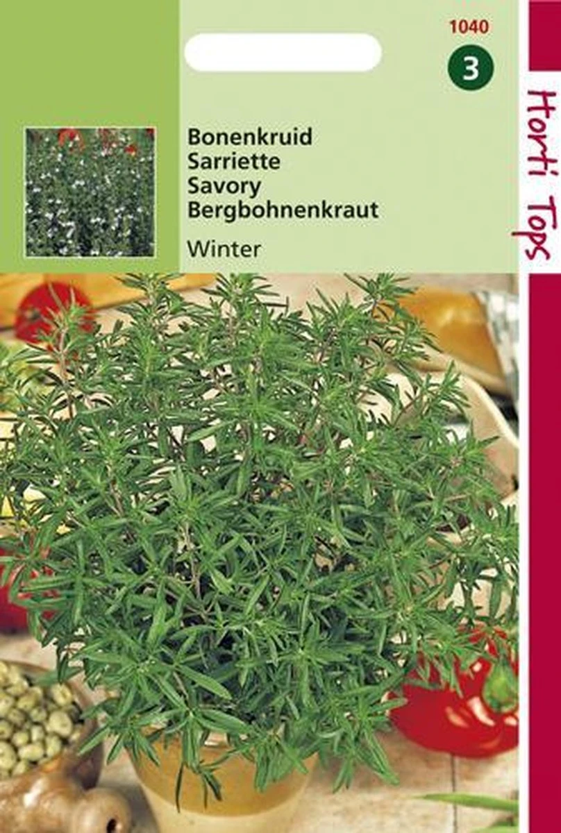 Bonenkruid – overblijvend. Vanaf half maart tot eind mei zaaien op regeltjes; eventueel in de regel iets uitdunnen. Lekker bij diverse peulvruchten zoals tuinbonen en bij diverse andere gerechten; ook effectief als thee tegen hoesten!