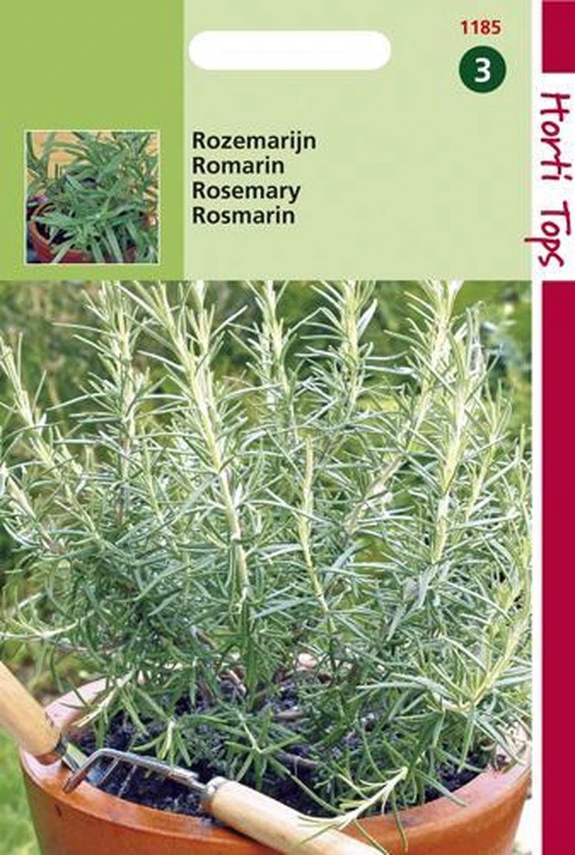 Rozemarijn. Kan vanaf maart-april in een kweekbakje gezaaid worden of in de periode april-juni buiten op een zaaibed; één keer verspenen en vervolgens uitplanten. ‘s Winters tegen de vorst beschermen of -als potplant binnenshuis overwinteren.