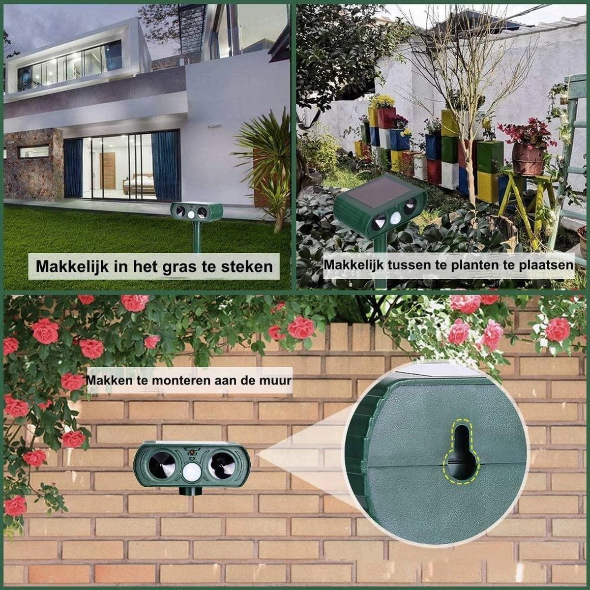 Makkelijk te plaatsen en door het ingebouwde zonnepaneel is dit niet alleen een milieuvriendelijk, maar ook een gebruiksvriendelijk product aangezien je er na het plaatsen niet meer naar om hoeft te kijken. Deze katten en dieren verjager heeft een praktisch en passend design, waardoor je niet alleen verlost bent van ongewenste katten en/of andere dieren, maar er ook nog een leuke decoratie voor in de tuin bij heeft!