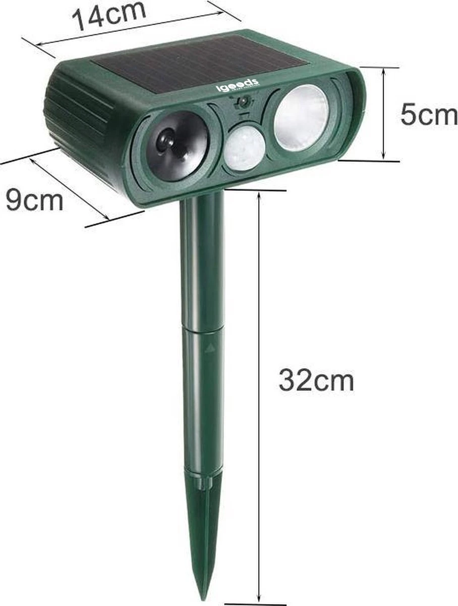 – Mocht het product toch wel een geluid maken die te horen is. Zet het artikel verder weg in de tuin hierdoor zal het geluid dat jij kan horen afnemen. Een andere optie is om de verjager alleen s nachts op actief te zetten. Zo heb je er overdag geen last van en verjaagd hij alle dieren wanneer jij geniet van je nachtrust!