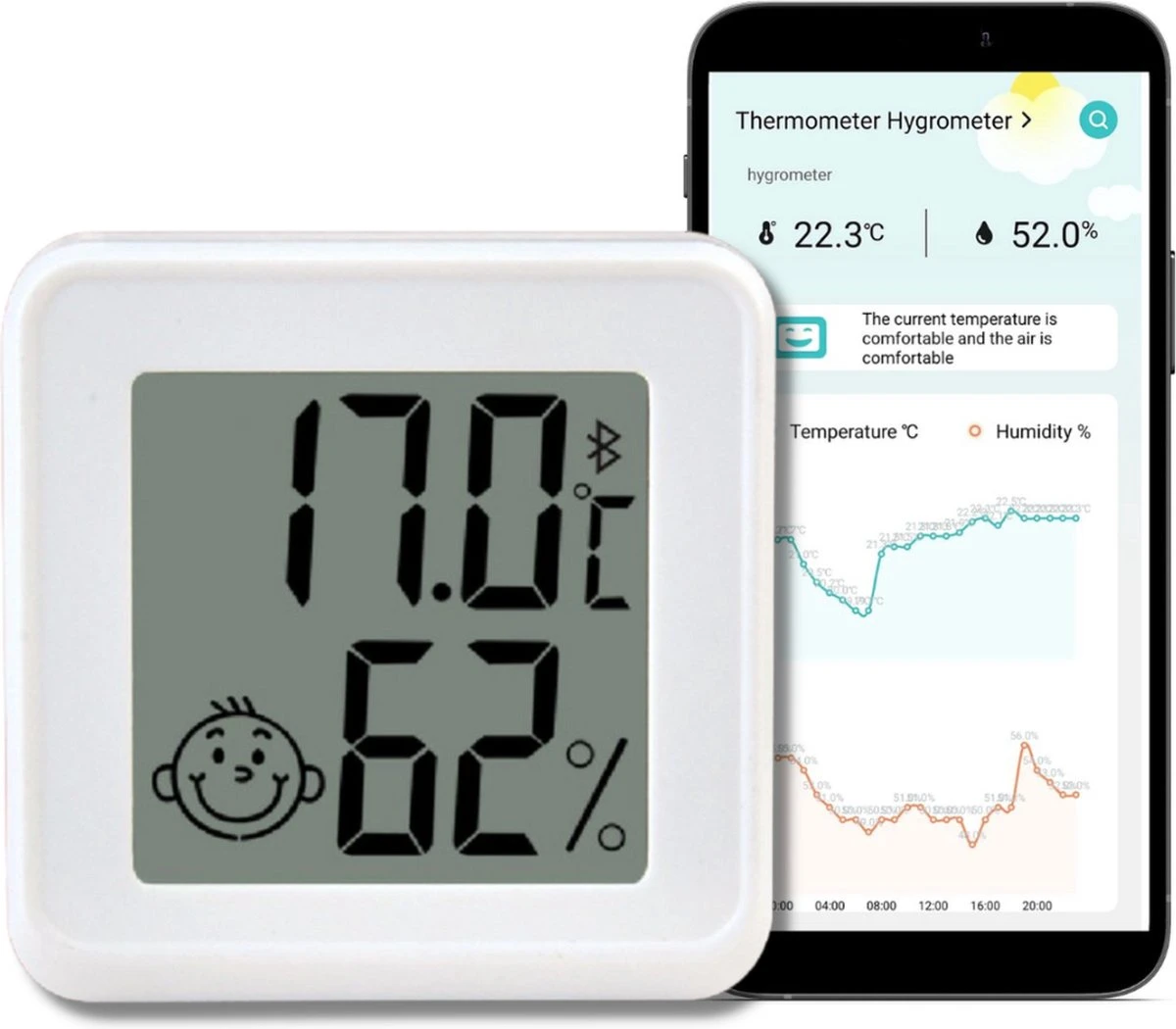 Het voordeel aan deze hygrometer is dat de meter voorzien is van een ingebouwde bluetooth verbinding. Hierdoor kunt u eenvoudig via de gratis app de gegevens van de meter op uw telefoon uitlezen. De gegevens worden real-time doorgestuurd, waardoor u altijd een accurate meting heeft. Daarnaast kunt u in de app meerdere gegevens makkelijk aflezen en met elkaar vergelijken, zonder de gegevens zelf op te hoeven schrijven.
