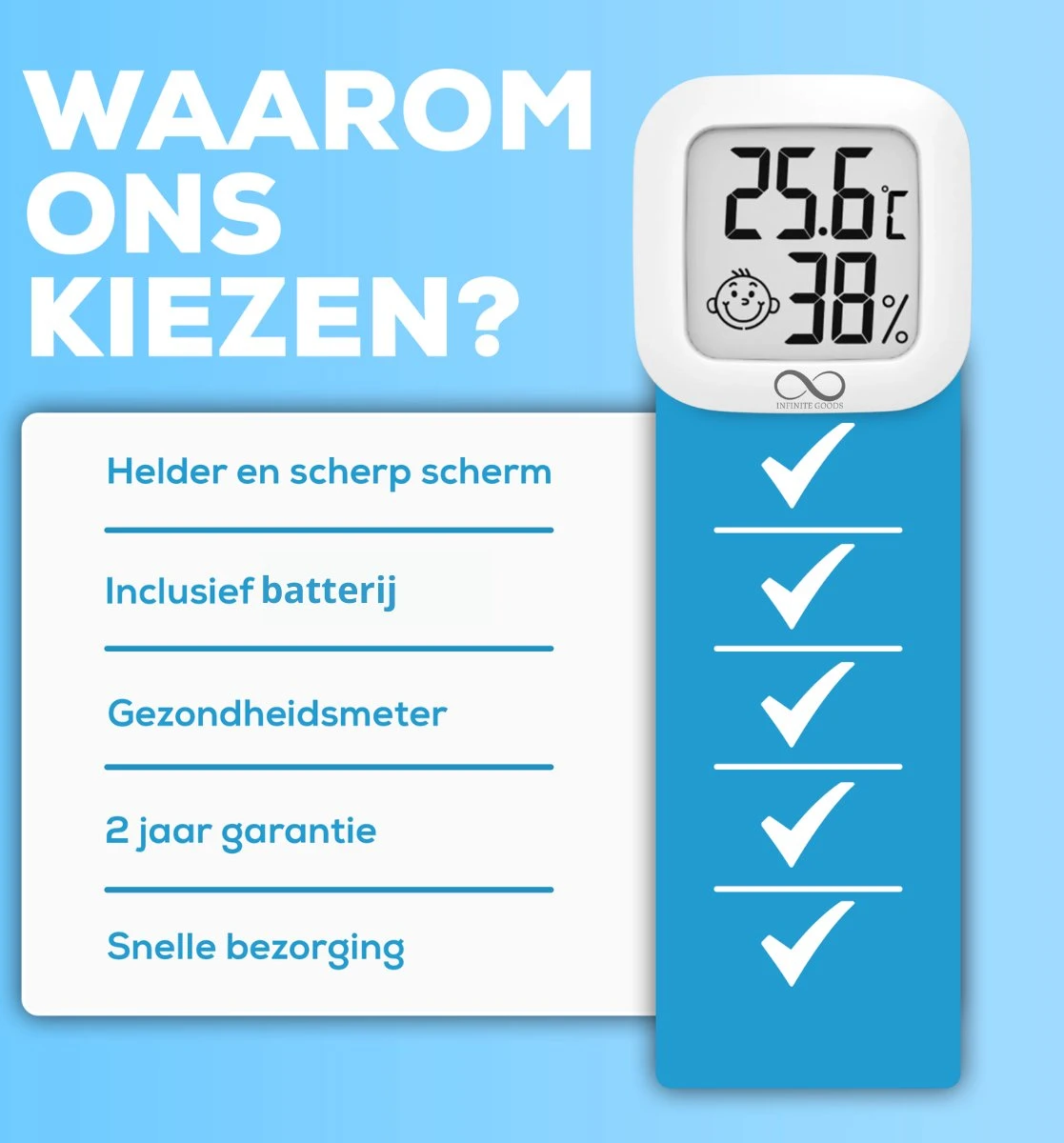 - 2 Jaar fabrieksgarantie – Geniet van de extra zekerheid op uw aankoop doordat wij als Infinite Goods 2 jaar fabrieksgarantie bieden op uw Infinite Goods hygrometer!