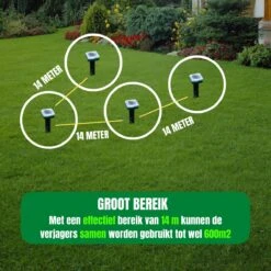 De mollenverjagers werken op zonne-energie en zijn vrij van batterijen. Zo los je een probleem dus erg milieuvriendelijk op! Dankzij de sterke kracht van de zonnepanelen komt het ultrasone geluid goed naar voren en werken de mollenverjagers optimaal. Ook wanneer het bewolkt is of regent, zullen de mollenverjagers gewoon werken! Het zonlicht komt gewoon door de wolken heen bovenop jouw mollenverjager.