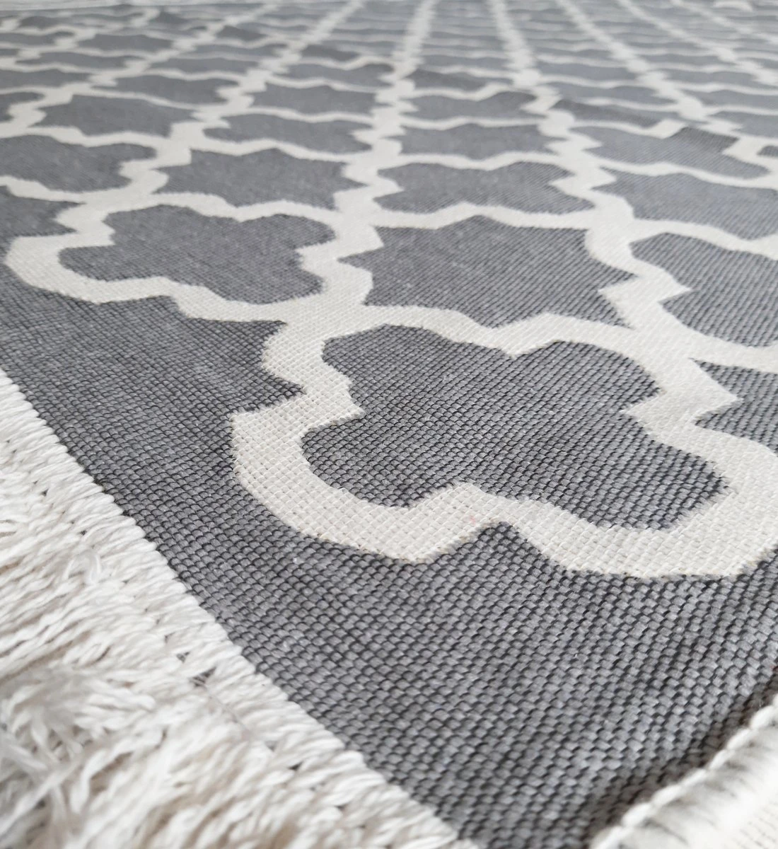 Kelim Vloerkleed Tapijtloper – Modern Grijs & Gebroken Wit – 80×300 Cm – Katoen Tapijt – Kilim – Keukenloper- Machinewasbaar