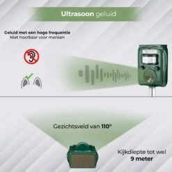 Bewegende dieren worden binnen een ruime detectie zone gedetecteerd. Met een gezichtsveld onder een hoek van 110° en een kijkdiepte van wel 9 meter ver, kan geen enkel ongedierte zich ongezien vestigen in uw tuin. De dieren zullen snel gedetecteerd worden en met een razend tempo uw tuin weer verlaten. Wel zo handig.