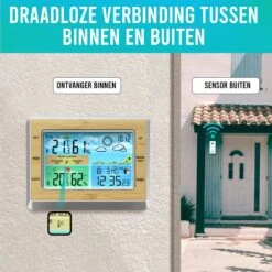-Draadloze verbinding met ontvanger binnen en sensor buiten; draadloos bereik is 60 m.