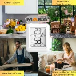 Het weer in Nederland verschilt hevig van dag tot dag. Denk bijvoorbeeld aan vochtige, benauwde zomers of droge winterdagen. Weersituaties als deze hebben een grote impact op jouw gezondheid. Als je bijvoorbeeld een gevoelige huid, longen of hart hebt, kun je extra gevoelig zijn voor deze omgevingsfactoren. Met de Maka hygrometer controleer je nauwkeurig de kamertemperatuur en luchtvochtigheid zowel thuis, op kantoor, als in jouw horecazaak of werkplaats.. Zo kun jij de juiste gezondheidskeuzes maken voor jouw situatie.