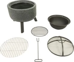 Met zijn stevig onderstel staat hij robuust in iedere tuin en is de vuurschaal veilig in gebruik. Extra bescherming tegen knsiperend hout wordt gegeven door het metalen raster dat bovenop de schaal geplaatst kan worden.