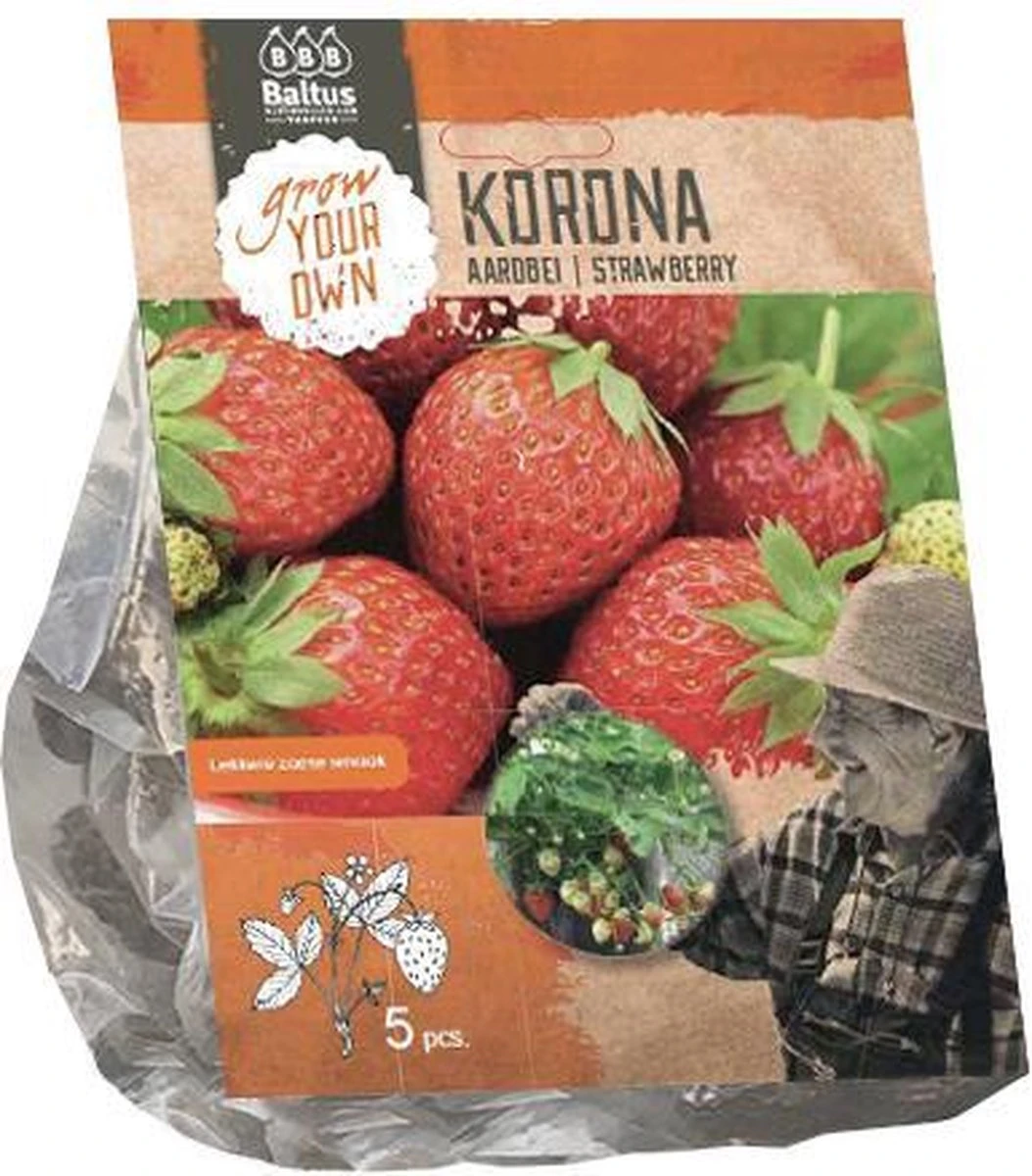 | Verpakkingsinhoud | 5 Mooie Aardbei korona stekjes voor in de tuin. |