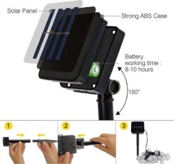 [IP65 waterdicht en de naverkoopdienst]: De koordlichten en de zonnepanelen zijn al IP65 waterdicht, en kunnen binnen en openlucht, zonder zich het ongerust maken over weerschade worden gebruikt. Wij verlenen altijd de zorg-vrije naverkoopdienst. Als u om het even welke vragen over het product hebt, gelieve te aarzelen niet om ons te contacteren, zullen wij binnen 12 uren antwoorden.
