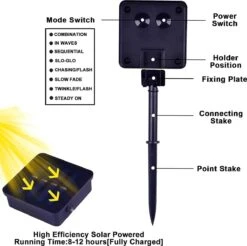 [Energy-saving en automatische schakelaar]: Het zonne laden, milieubescherming, geen elektriciteitsrekeningen, het batterijleven tot meer dan 18 maanden. Deze zonnelichten laden tijdens de dag, zetten automatisch aan bij schemering, en zetten uit bij dageraad.